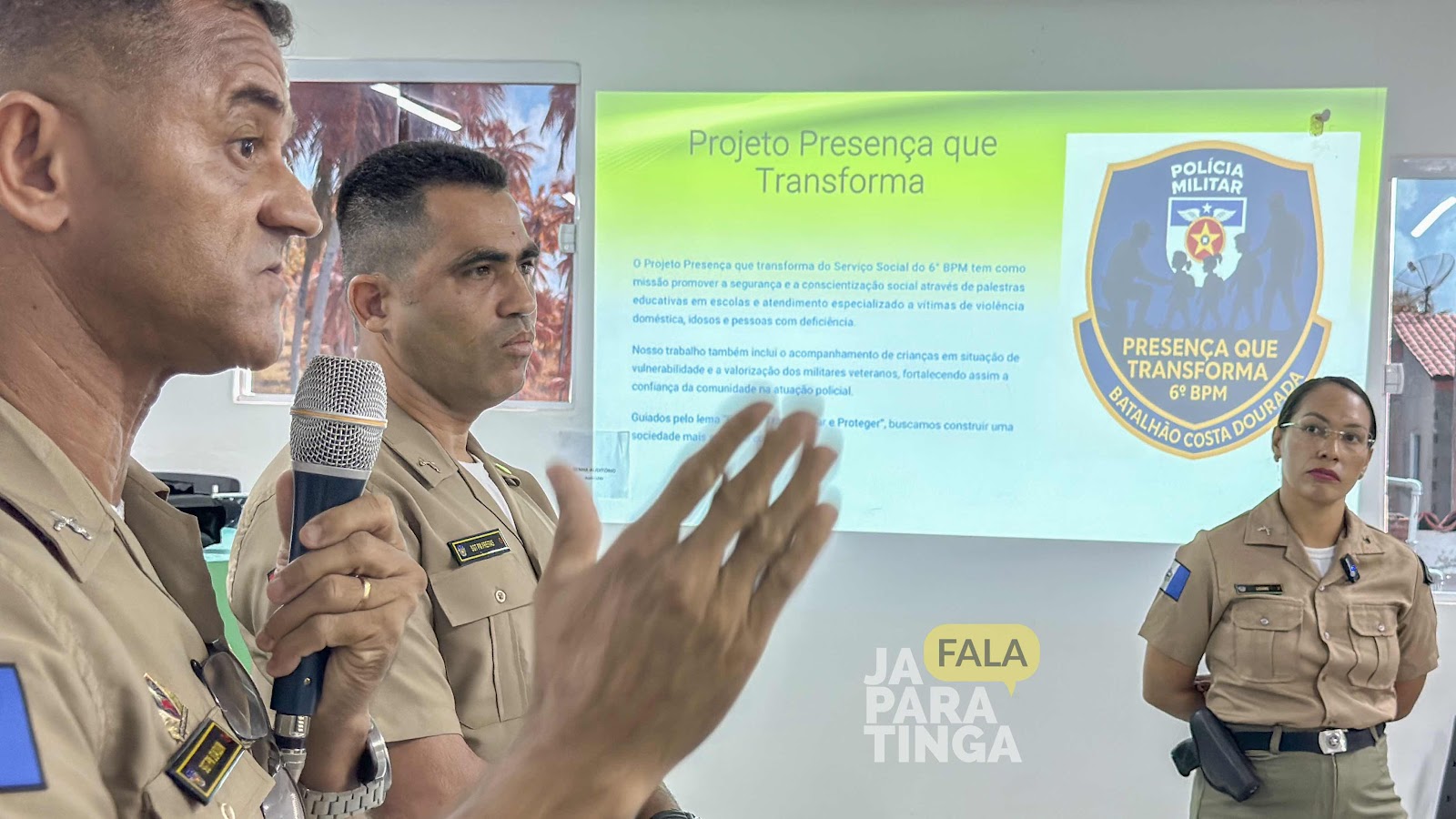O projeto Presença que Transforma, coordenado pelo Serviço Social do 6º BPM, tem como missão promover a segurança e a conscientização social por meio de palestras educativas nas escolas e de atendimento especializado às vítimas de violência doméstica, idosos e pessoas com deficiência. O trabalho também inclui o acompanhamento de crianças em situação de vulnerabilidade e a valorização dos militares veteranos, fortalecendo assim a confiança da comunidade na atuação policial. Guiados pelo lema “Educar, Transformar e Proteger”, os integrantes do projeto buscam construir uma sociedade mais segura e consciente.